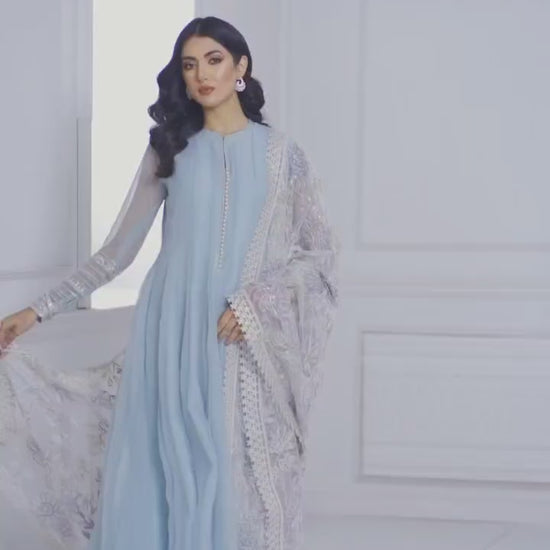 New Pure Chiffon Flairy Ready To Wear Frock With Buttons Gala Along With Net Embroidered Net Dupatta In Amazing Combination!!
