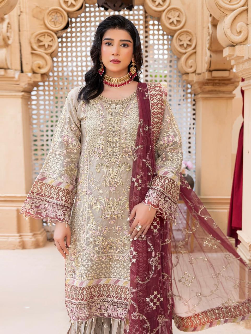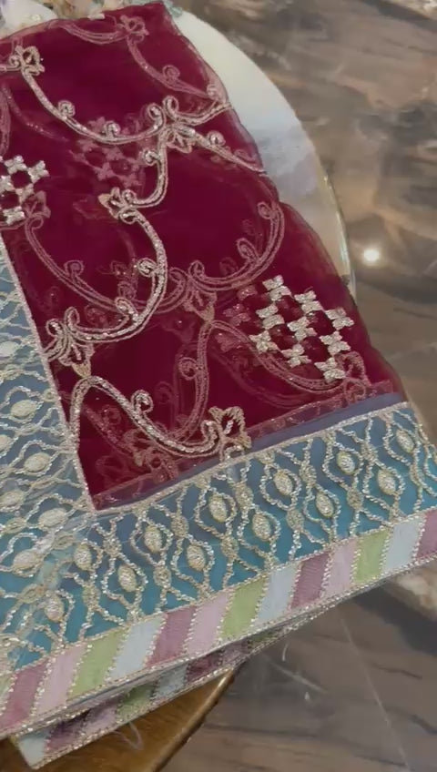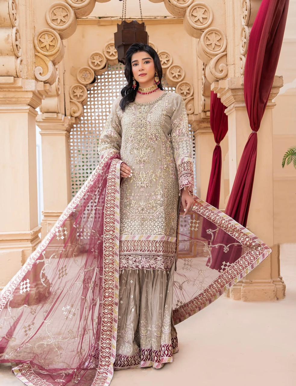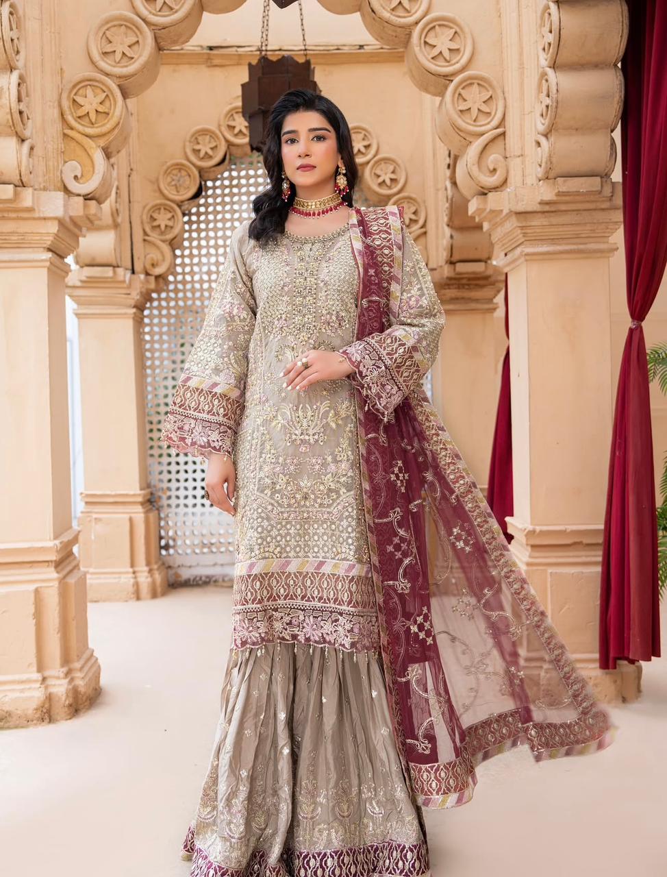 Shirt Along With Beautiful Contrast Net Embroidered Dupatta And Embroidered Gharara In Amazing 2 Colours Combination..!!