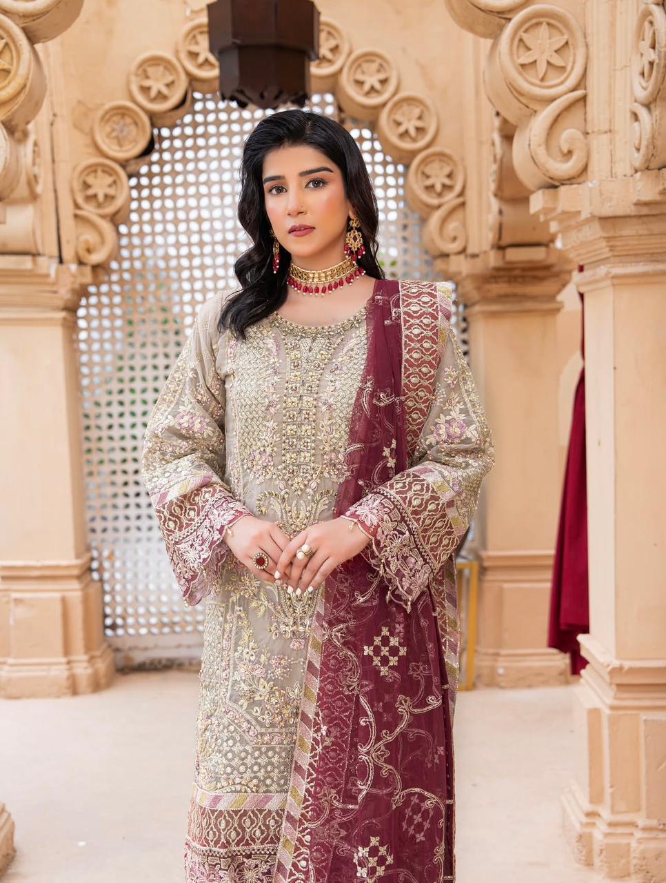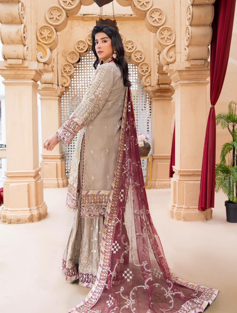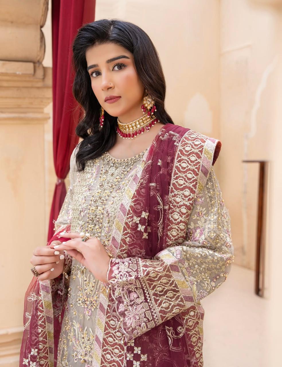 Shirt Along With Beautiful Contrast Net Embroidered Dupatta And Embroidered Gharara In Amazing 2 Colours Combination..!!